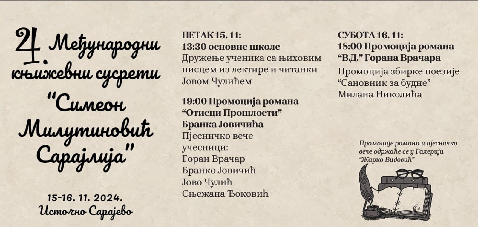 ASoglas Izdavaštvo Promocije 4.МЕЂУНАРОДНИ КЊИЖЕВНИ СУСРЕТИ ” СИМЕОН МИЛУТИНОВИЋ САРАЈЛИЈА” PromocijeVijesti 4.МЕЂУНАРОДНИ КЊИЖЕВНИ СУСРЕТИ ” СИМЕОН МИЛУТИНОВИЋ САРАЈЛИЈА” Autor Dejan Spasojević - November 16, 2024 121 0 FacebookTwitterPinterestWhatsAppTelegram